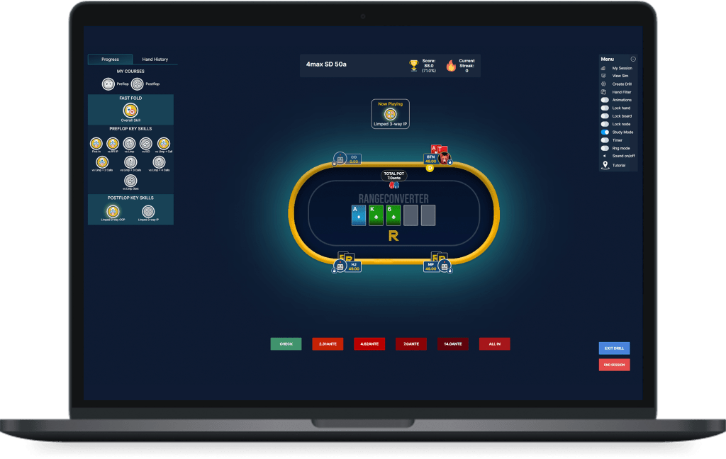 - Personalized training with preflop and postflop strategy courses